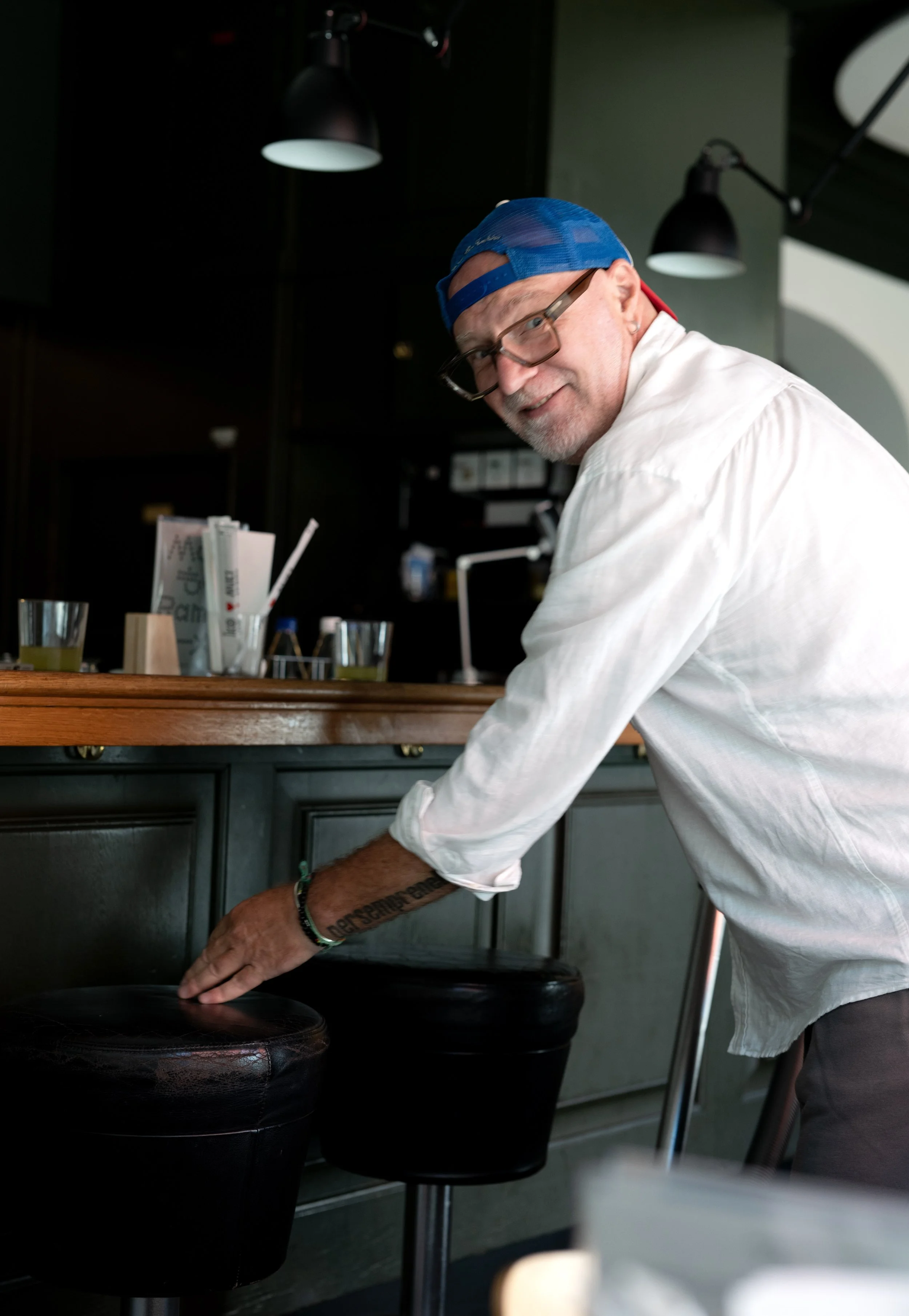Er liebt die “Bühne”. Mit den ersten Restaurantgästen wird jeder Tag zu einem kleinen Spektakel. Ein dunkler Witz, ein kurzer Blick - und schon spürt er die Lebendigkeit. Heimlich aber sehnt er sich nach mehr - Verbundenheit, zeitlos und beständig. Mit wenig Geduld aber mit viel Zuversicht begegnet er jedem neuen Tag. Life is good, right? Memento Mori.